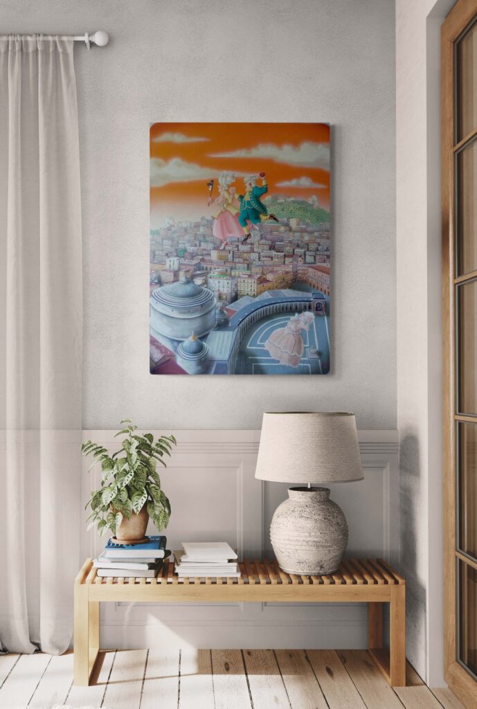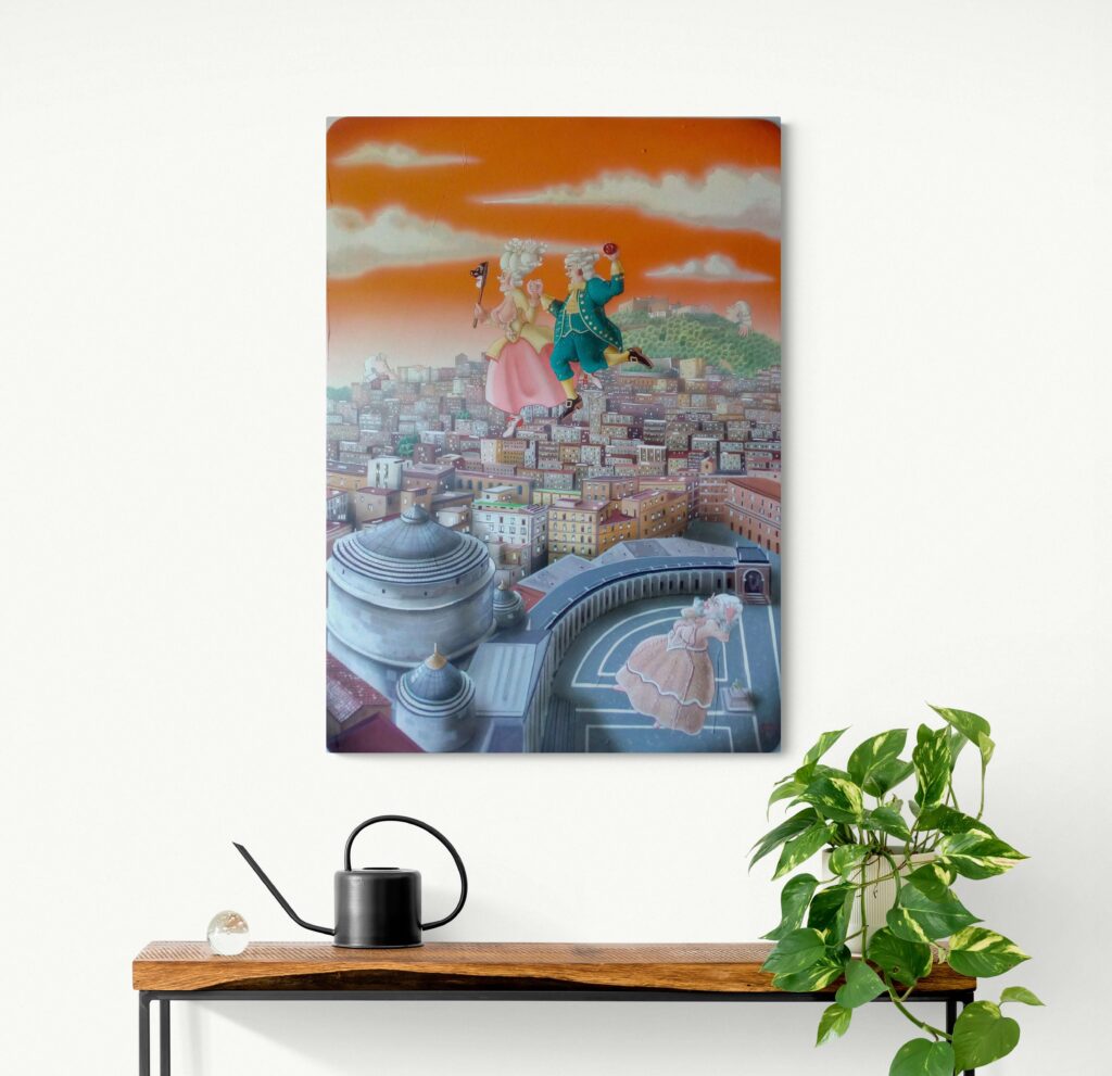 La serie ‘A Tumbulella’, Il Bingo Napoletano, è composta da un gruppo di 90 opere ispirate ai numeri della Smorfia, uno straordinario viaggio attraverso una Napoli colorata che viene vissuta dall’artista come “un teatro a cielo aperto”.