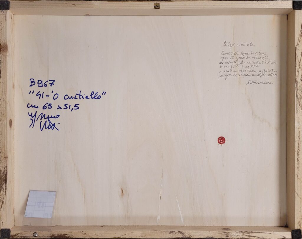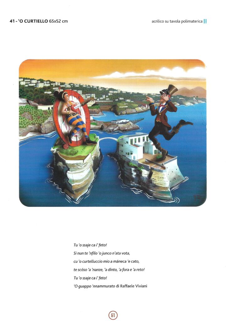 Nella Smorfia napoletana, il numero 41 è simboleggiato dal coltello. In quest’opera, il Maestro Vinanti purifica il coltello da ogni connotazione violenta e il suo personaggio trafigge il cuore simbolico della sua amata.