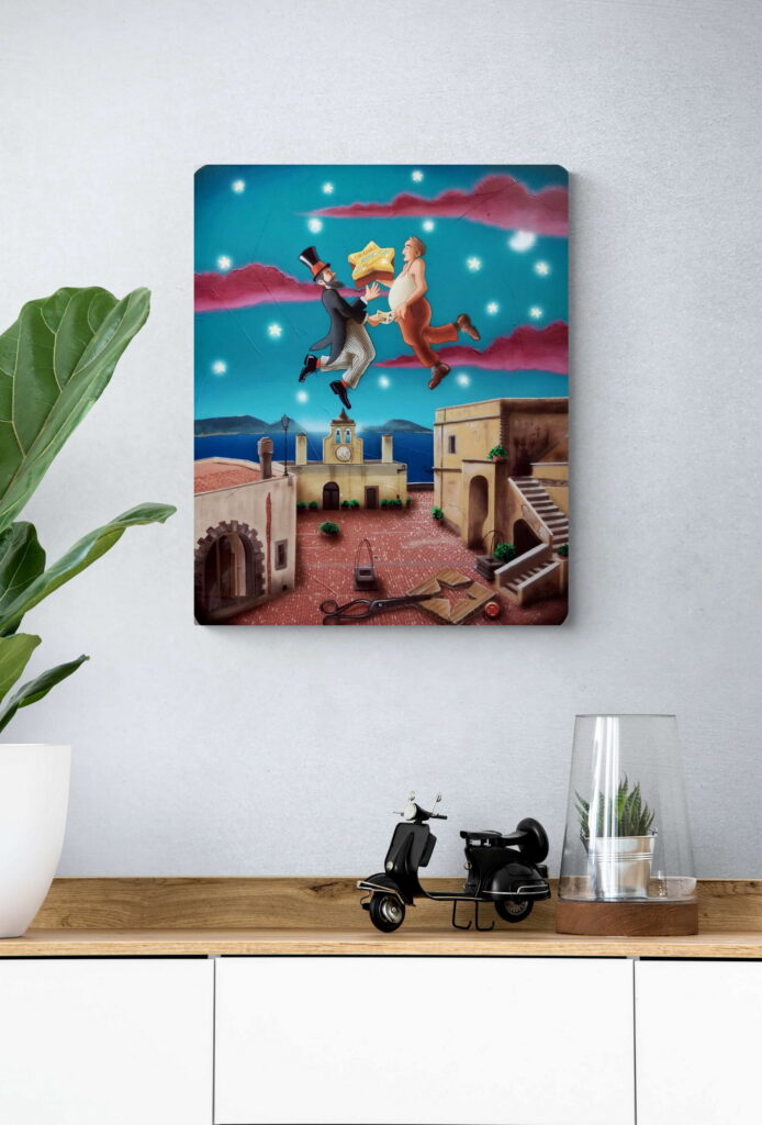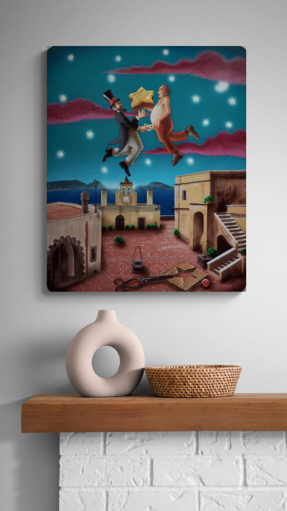 La serie ‘A Tumbulella’, Il Bingo Napoletano, è composta da un gruppo di 90 opere ispirate ai numeri della Smorfia, uno straordinario viaggio attraverso una Napoli colorata che viene vissuta dall’artista come “un teatro a cielo aperto”.