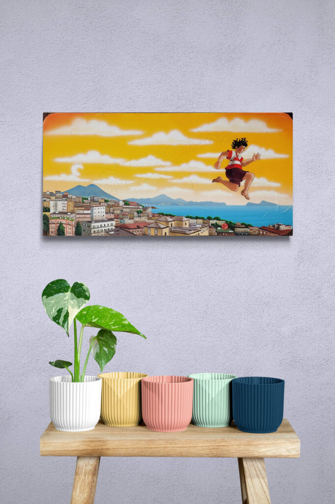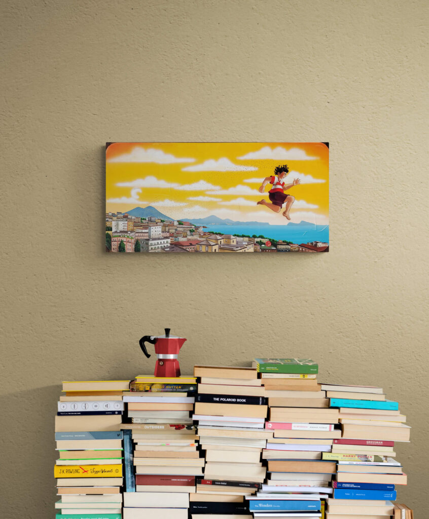 La serie ‘A Tumbulella’, Il Bingo Napoletano, è composta da un gruppo di 90 opere ispirate ai numeri della Smorfia, uno straordinario viaggio attraverso una Napoli colorata che viene vissuta dall’artista come “un teatro a cielo aperto”.