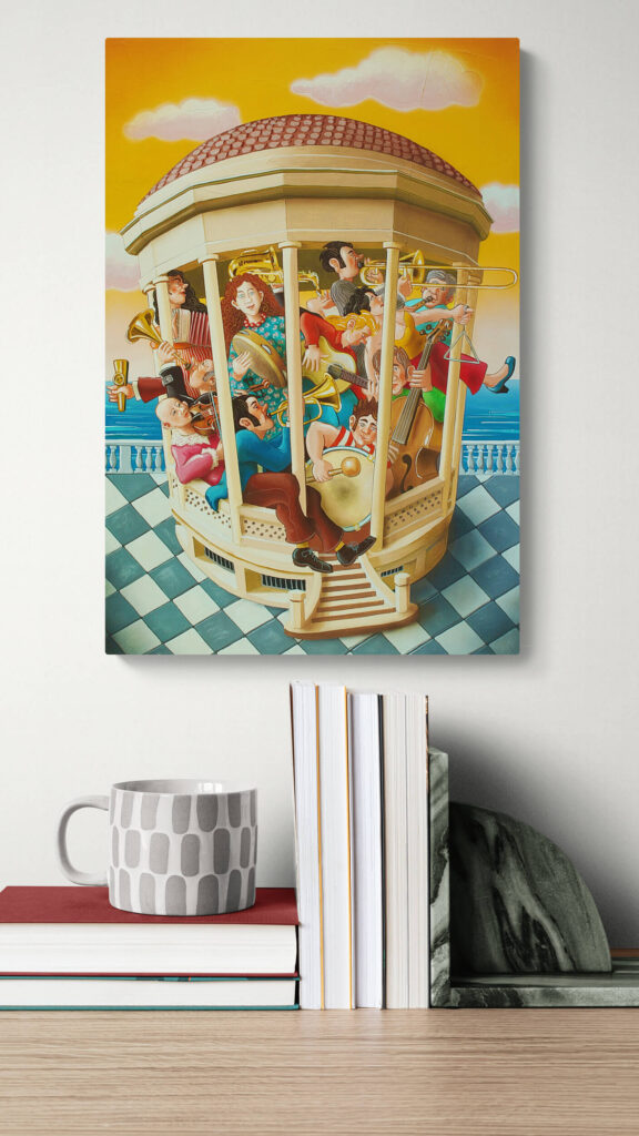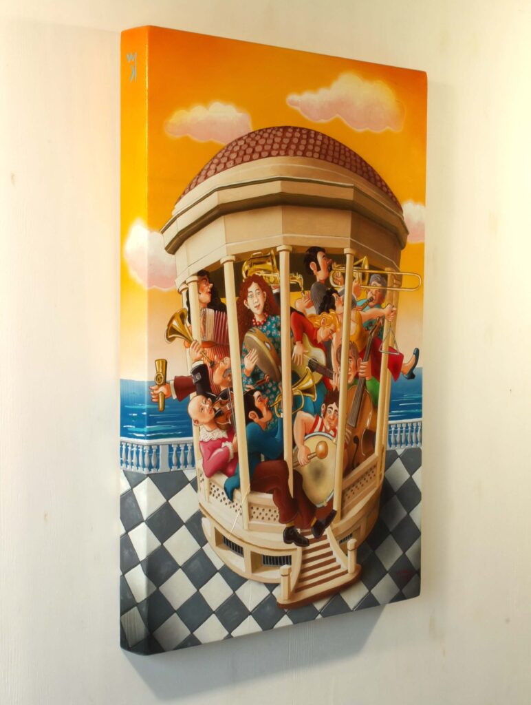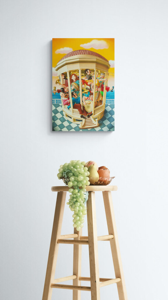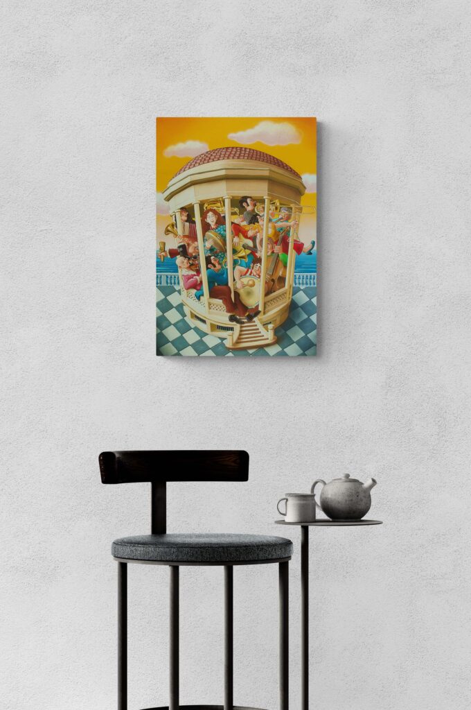 Quest’opera fa parte della collezione Nuove Prospettive del Surrealismo, il nuovo progetto espositivo di Maurizio Vinanti. In questo ciclo, l’artista abbandona la prospettiva tradizionale per esplorare un linguaggio visivo personale e inedito, in cui ogni quadro rappresenta una tappa di un viaggio di trasformazione, ricerca e libertà espressiva.