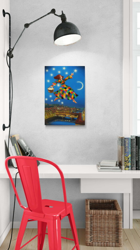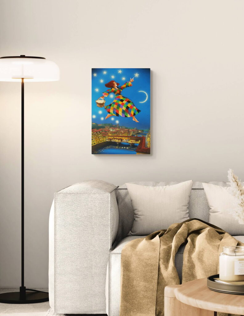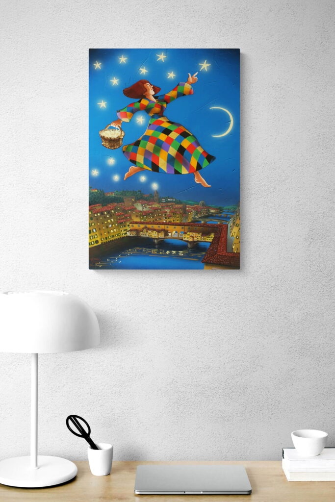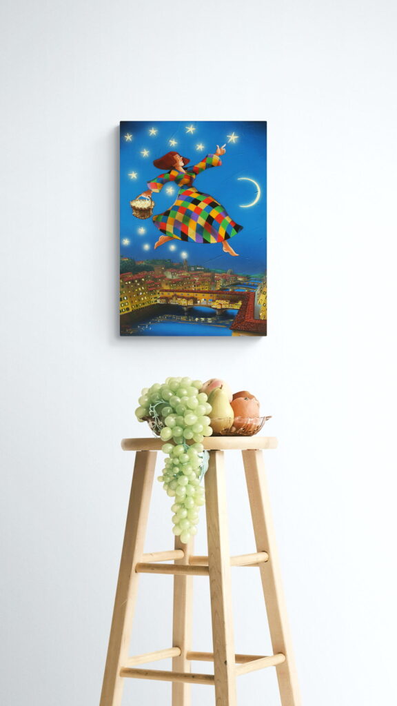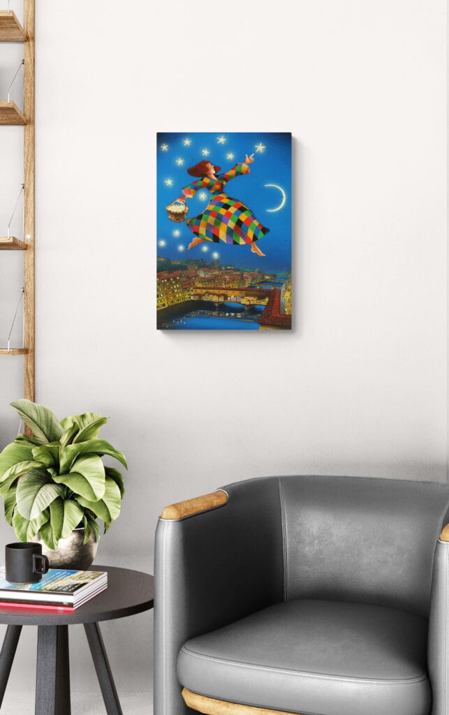Quest’opera fa parte della collezione Nuove Prospettive del Surrealismo, il nuovo progetto espositivo di Maurizio Vinanti. In questo ciclo, l’artista abbandona la prospettiva tradizionale per esplorare un linguaggio visivo personale e inedito, in cui ogni quadro rappresenta una tappa di un viaggio di trasformazione, ricerca e libertà espressiva.