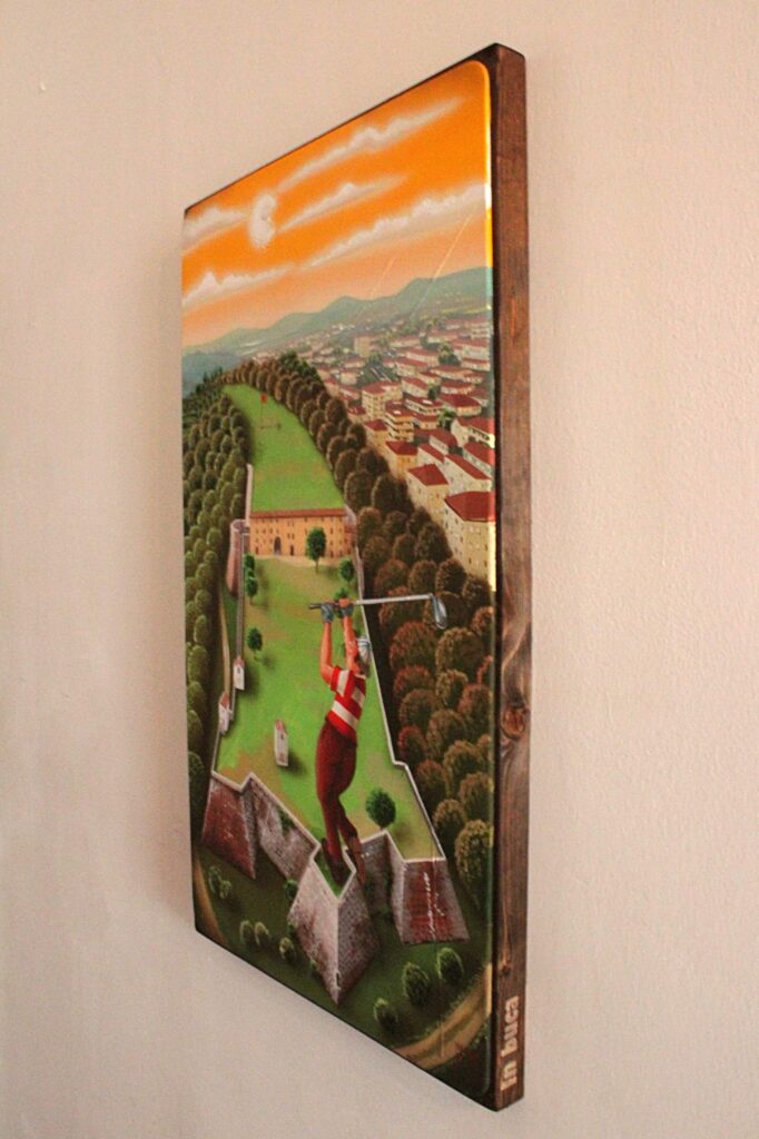 “Vedo ogni tanto che si organizzano sfide a golf nei posti più strani. Nei porti; da una barca all’altra, nelle grandi città; fra un grattacielo e l’altro, a Firenze fra i ponti… mi sono chiesto? Ma ci sono posti non proprio ortodossi dove si potrebbe fare: perché lì no?”