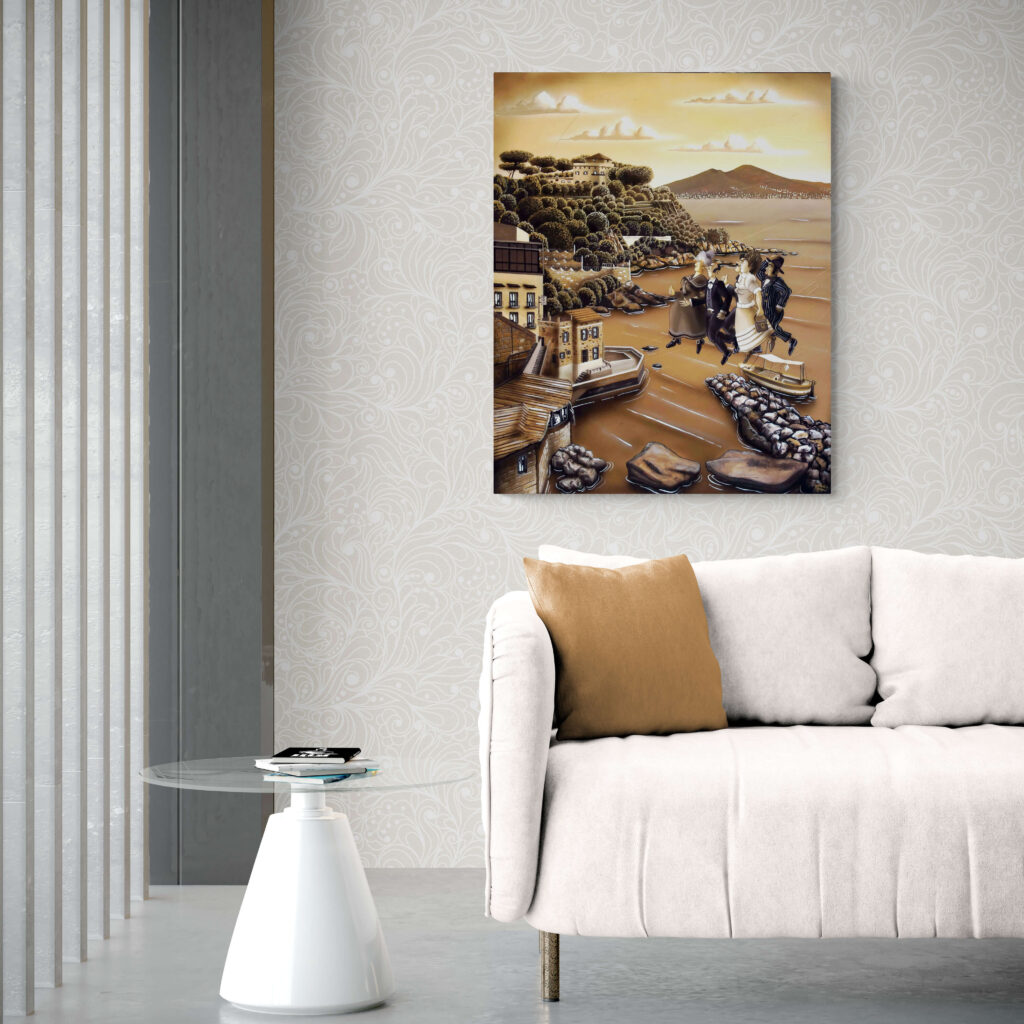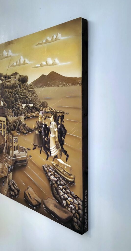 “Il racconto figurato di una classica canzone napoletana. La scelta del “viraggio” mi porta ai tempi lontani, quelli belli di un tempo passato che non può più tornare, se non nei ricordi vividi che da!”