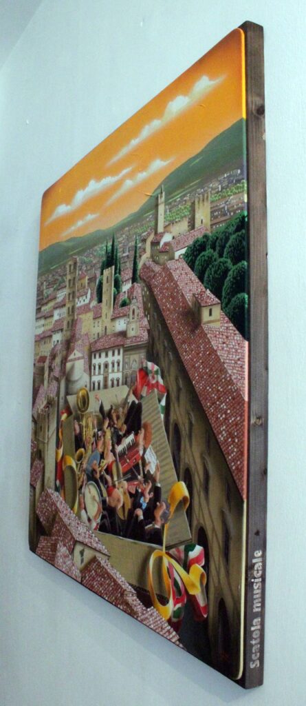 “Un giorno mia cugina che è una cantante mi disse che “loro” musicisti si sentivano ingabbiati durante i periodi più duri della pandemia Covid. Da quella frase mi venne l’idea di metterli tutti in una scatola. Pronti per una futura nuova suonata!”