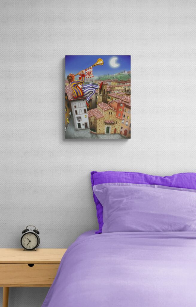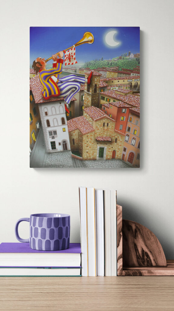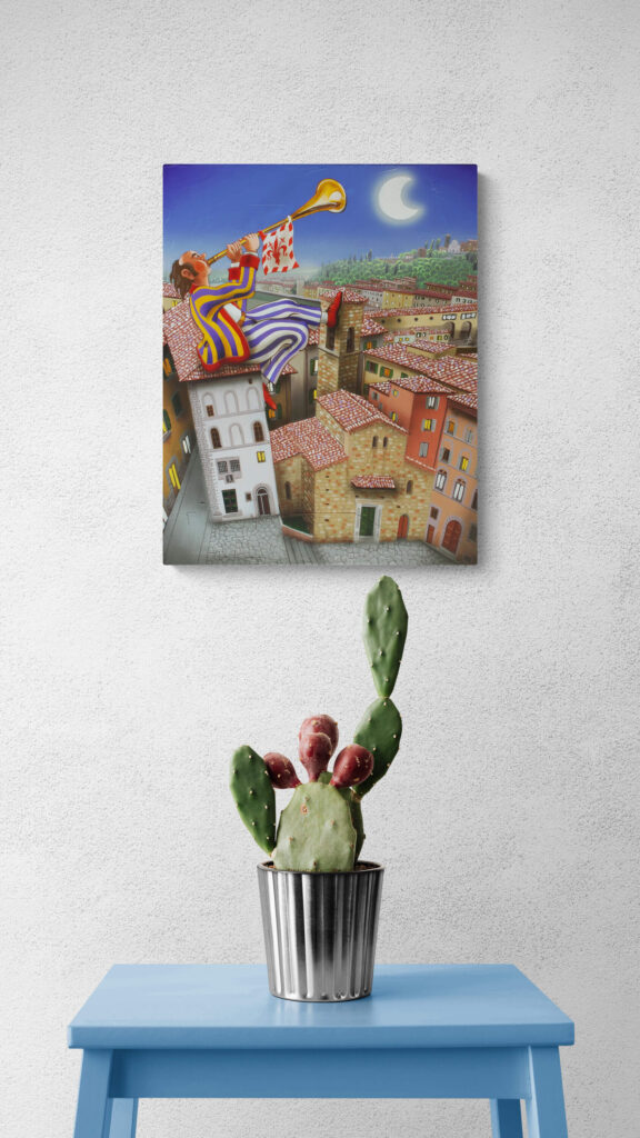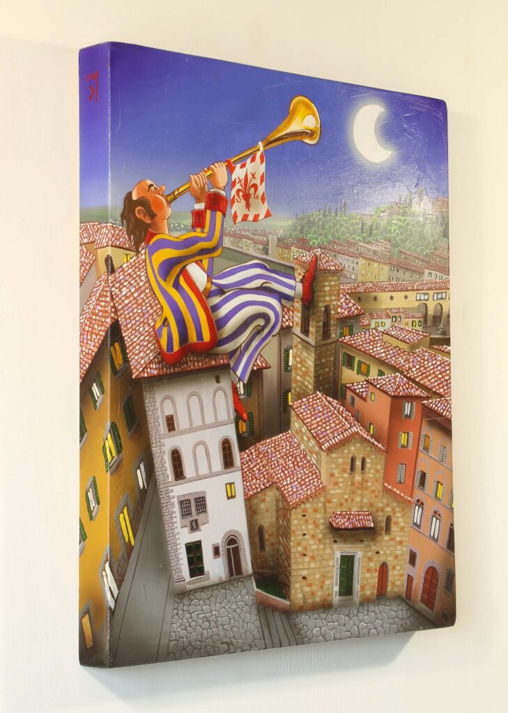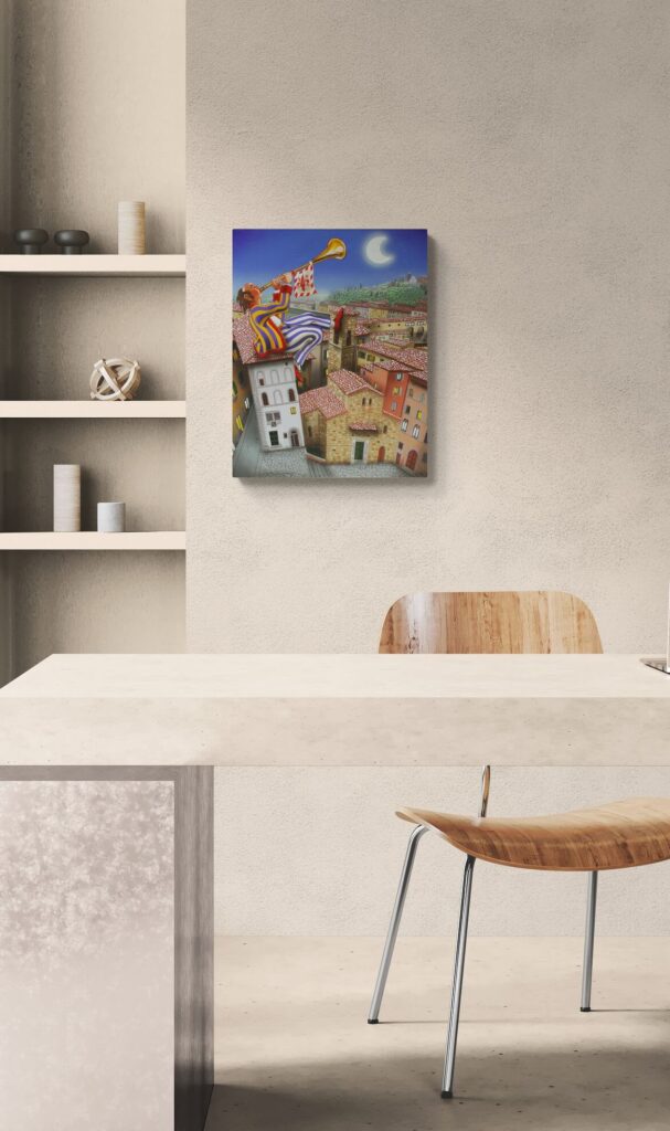 Quest’opera fa parte della collezione Nuove Prospettive del Surrealismo, il nuovo progetto espositivo di Maurizio Vinanti. In questo ciclo, l’artista abbandona la prospettiva tradizionale per esplorare un linguaggio visivo personale e inedito, in cui ogni quadro rappresenta una tappa di un viaggio di trasformazione, ricerca e libertà espressiva.