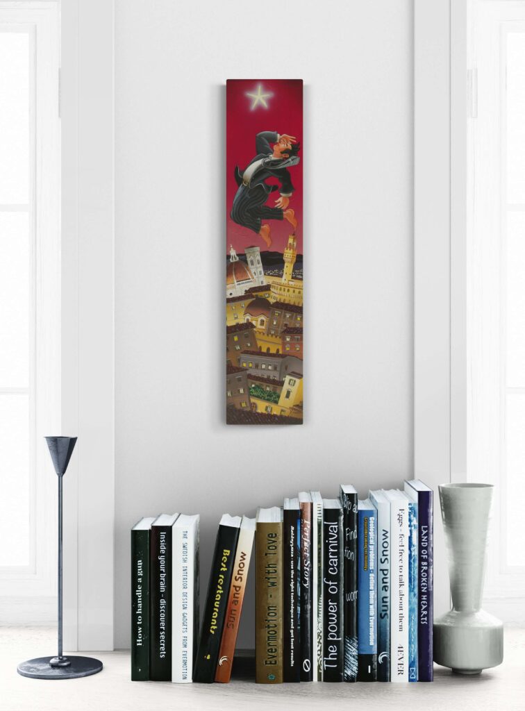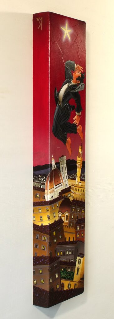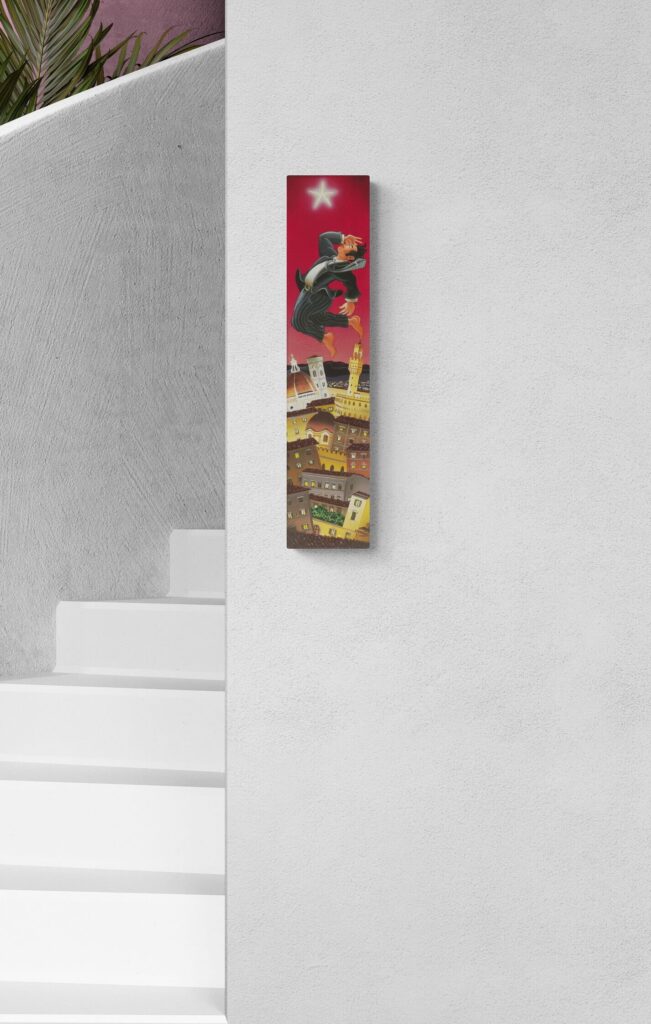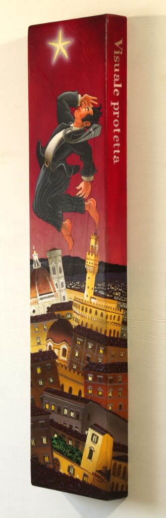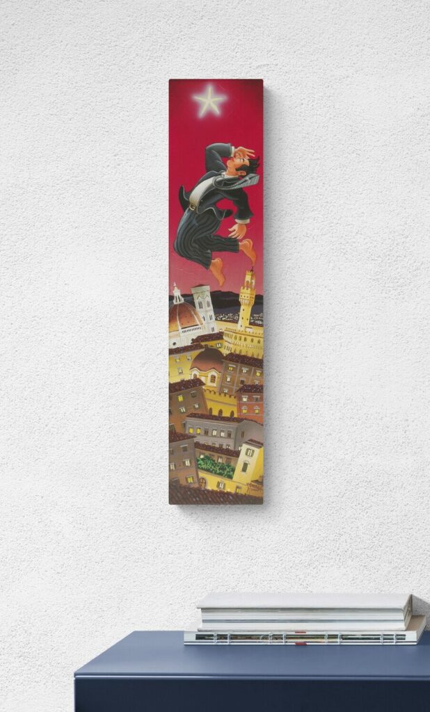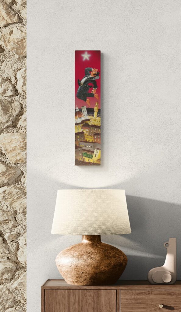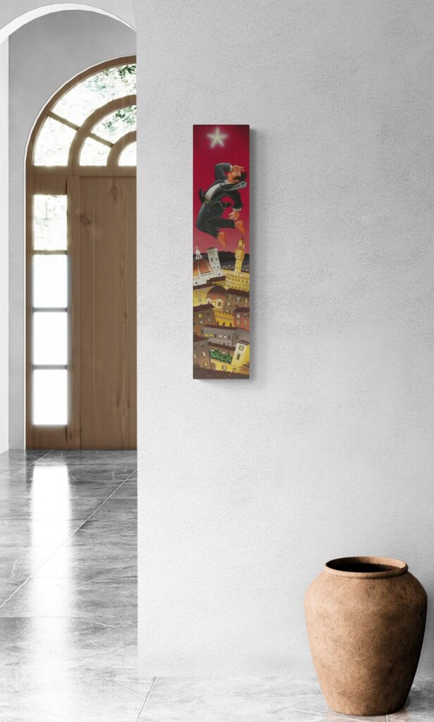 Quest’opera fa parte della collezione Nuove Prospettive del Surrealismo, il nuovo progetto espositivo di Maurizio Vinanti. In questo ciclo, l’artista abbandona la prospettiva tradizionale per esplorare un linguaggio visivo personale e inedito, in cui ogni quadro rappresenta una tappa di un viaggio di trasformazione, ricerca e libertà espressiva.